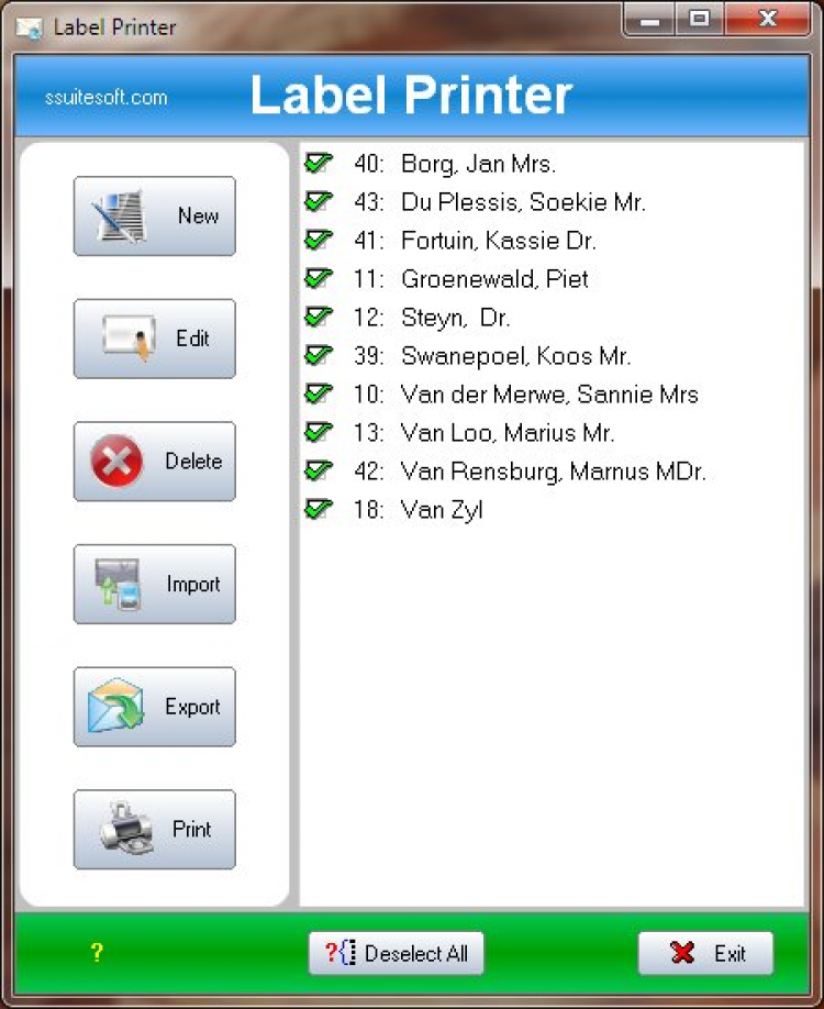 Программа для создания и печати адресных этикеток, которые приклеиваются на посылки. В программе есть своя база данных для заполнения полей этикетки в автоматическом режиме. Можно выбирать шрифт надписей, его размер и стиль, межстрочный интервал и положение.
