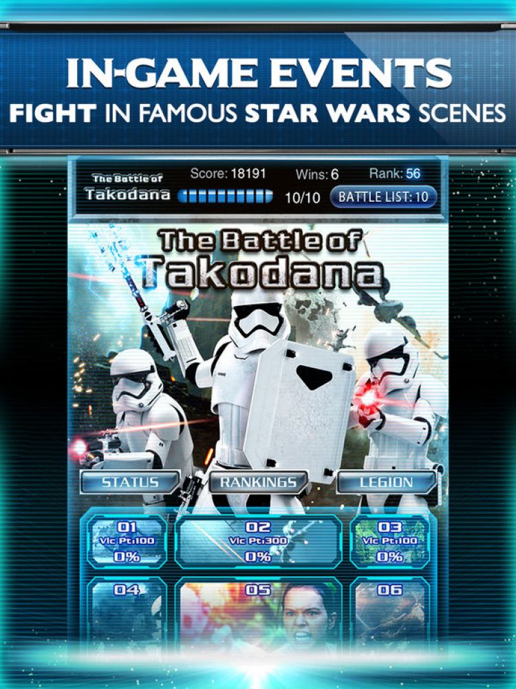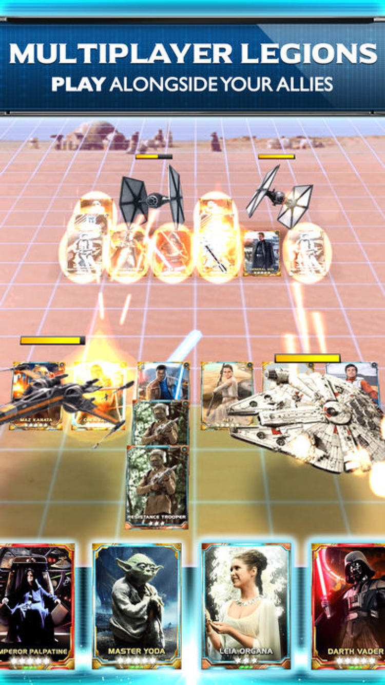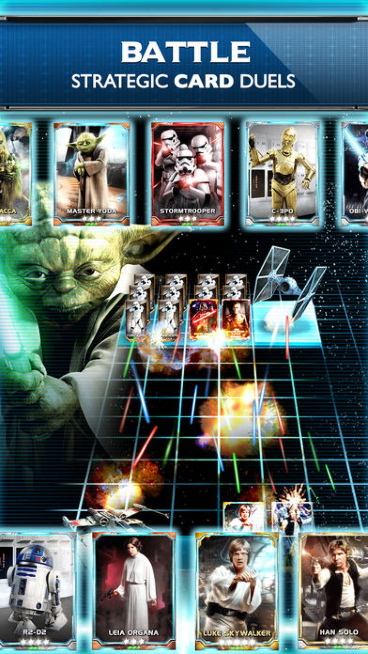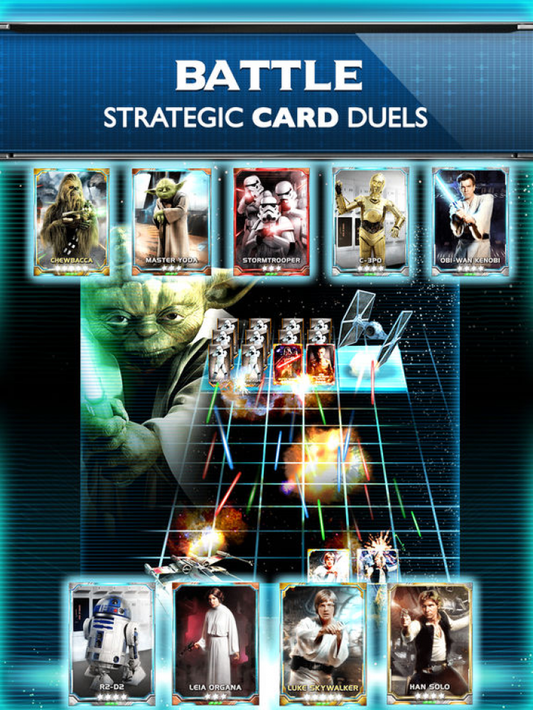 STAR WARS FORCE COLLECTION Увлекательная карточная игра для фанатов Star Wars. Соберите более 230 игровых карт и участвуйте в межгалактических баталиях. Определите свой путь по светлой или темной стороне Силы и вступайте в схватки с боссами или другими игроками. Star Wars Force Collection позволит вам путешествовать по вашим любимым планетам вселенной Звездных Войн, а так же составлять чертежи новых боевых машин, которые принесут вам победу. Карточки можно находить в процессе игры, покупать во внутриигровом магазине, а так же обмениваться ими с другими игроками. Новые игроки могут получить свою первую премиум-карту, пройдя пролог.
