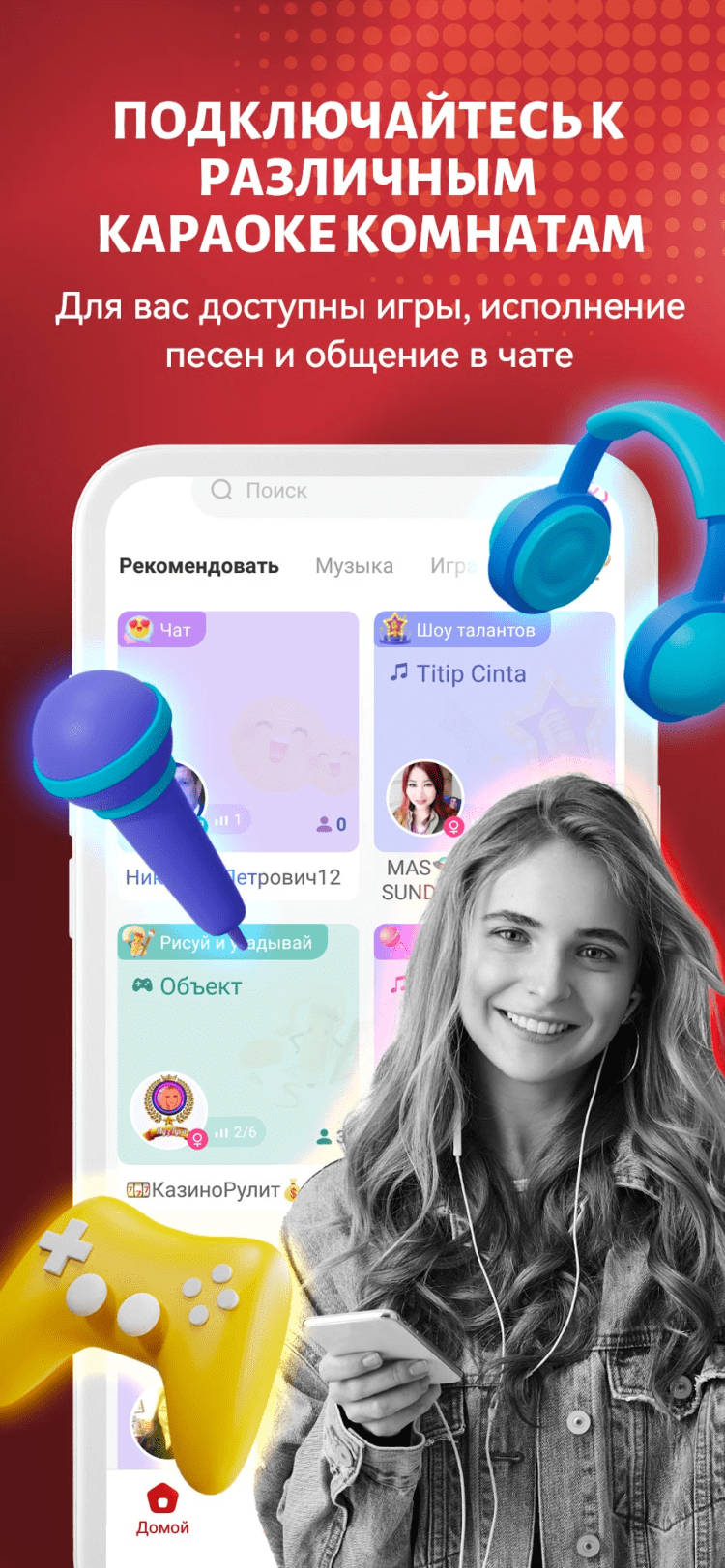 - создание комнат для исполнения песен дуэтом, общения и развлечения;