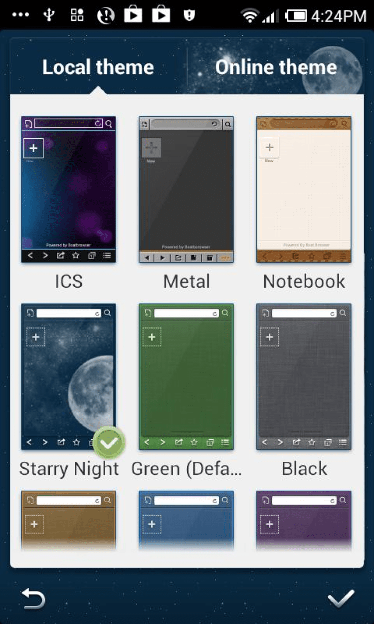 Starry Night Boat Mini Theme Красивая тема оформления для приложения Boat Browser Mini версии 3.7 и выше, выполненная в стиле звездного ночного неба. Перед установкой этой темы, убедитесь что на вашем устройстве установлен Boat Browser.