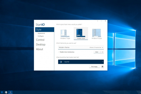 Start10 поддерживает визуальные темы: стандартный Windows 7, современный Modern Style и новый Windows 10. Также можно загрузить Start10 для Windows 7 или Windows 8. Встроенный редактор оптимизирует готовый стиль или создает новое меню. Возможности редактора позволяют настроить прозрачность, изменить цвет, текстуры, фон. Start10 размещает в папки, ярлыки и открывает доступ к выключению ПК, устройствам, музыке, документам, видео.