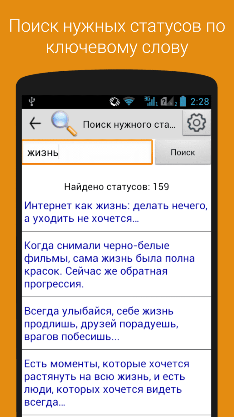 - сохранять в "Избранное" любые фразы длинной до 140 символов из сторонних приложений или публиковать эти фразы в социальных сетях в виде статусов.