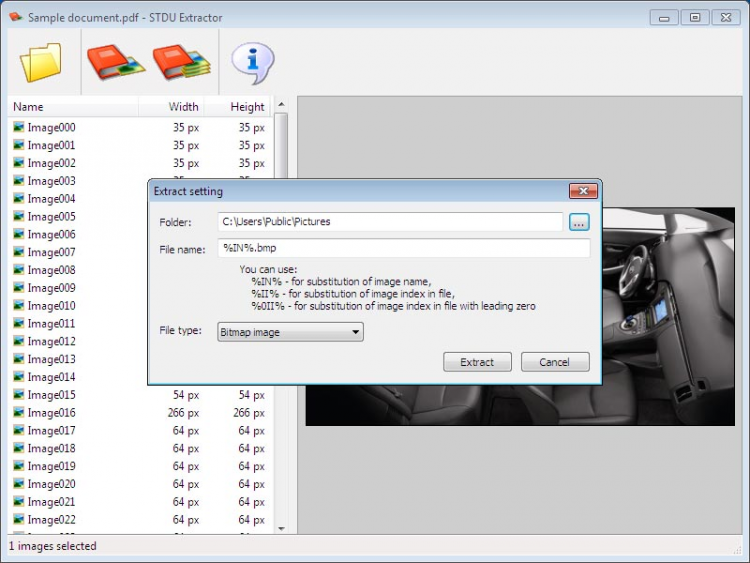 STDU Extractor - это простая программа, которая позволяет извлечь изображения из ваших документов в формате PDF, WWF, XPS, MOBI, AZW или FB2. Вы можете извлечь как все изображения, так и только те, которые вам нужны. STDU Extractor позволяет выбирать формат выходных файлов: bmp, gif, png или jpg.