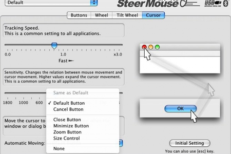 SteerMouse Набор драйверов для USB и Bluetooth мышей, который так же поддерживает и Apple Mighty Mouse. С помощью SteerMouse можно назначит различные действия на все кнопки мыши и настроить скорость и чувствительность курсора.