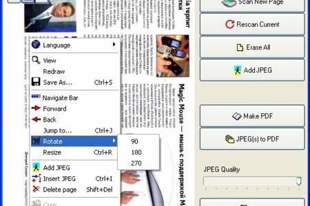 - создание JPEG файлов из сканированных изображений;