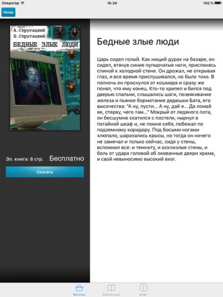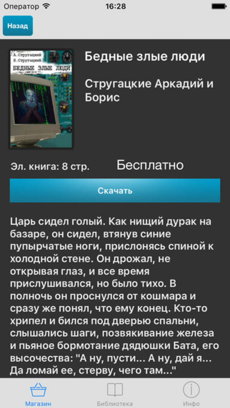 Стругацкие Данное приложение представляет собой непрерывно обновляющееся собрание самых известных произведений лучших фантастов советской и постсоветской России - Аркадия и Бориса Стругацких. Здесь и «Жук в муравейнике», и «Пикник на обочине», и «Трудно быть богом» и многие, многие другие. Кому-то знакомые с детства герои, для кого-то - неизвестные захватывающие приключения, которые только предстоит пережить, но так или иначе, эти книги никого не оставят равнодушным.
