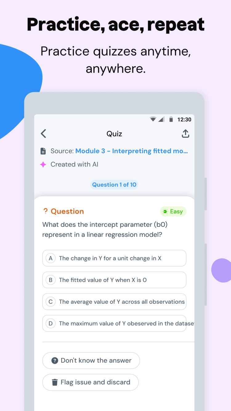 Ещё одна особенность программы Studocu — инструмент AI Quiz Maker. Как легко догадаться из названия, он позволяет создавать тесты на основе загруженных пользователем документов. Это отличный способ не только проверить свои знания, но и изучить даже самые сложные темы.