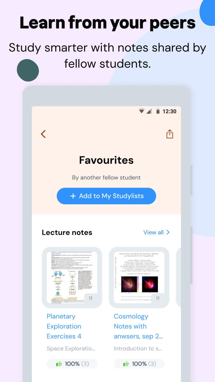 Studocu выделяется среди конкурентов обширной библиотекой учебных материалов. В отличие от других программ, где можно найти лишь базовый набор скучных учебников, это приложение предлагает вам выбрать учебное заведение из списка и получить доступ ко всем связанным теоретическим, практическим материалам, конспектам и заметкам, опубликованным реальными пользователями. Здесь вы обязательно найдете все необходимое для подготовки к экзаменам и улучшения своих оценок.