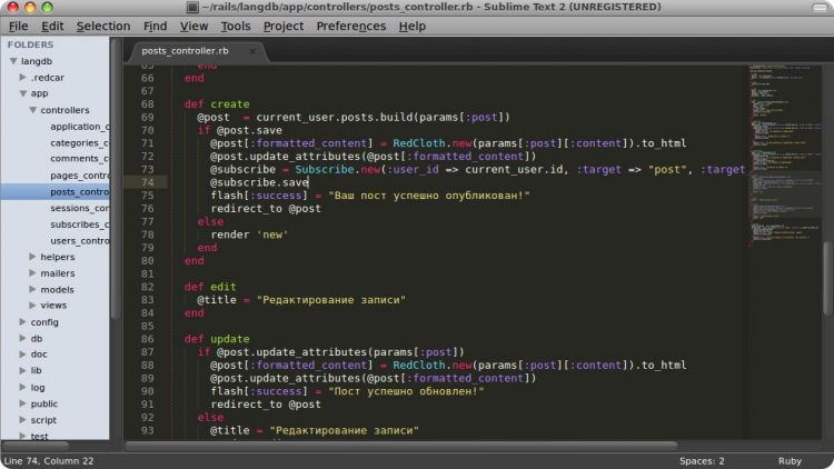 Это кроссплатформенный редактор текста и исходных кодов. Он поддерживает подсветку синтаксиса для C, C++, C#, CSS, D, Erlang, HTML, Groovy, Haskell, HTML, Java, JavaScript, LaTeX, Lisp, Lua, Markdown, Matlab, OCaml, Perl, PHP, Python, R, Ruby, SQL, TCL, Textile и XML и других языков.