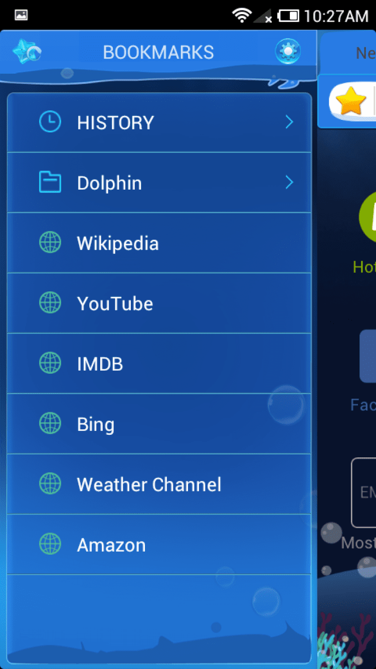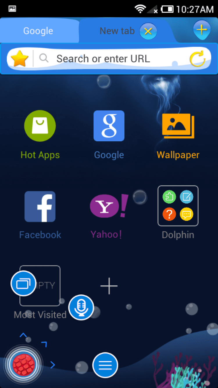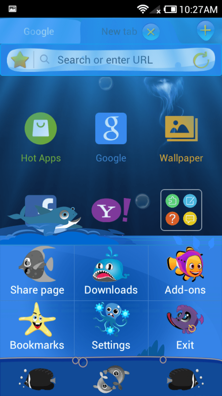 Submarine World[Dolphin Theme] Сменная тема оформления для приложения Dolphin Browser, выполненная в подводном стиле. Разнообразьте вид своего любимого браузера и насладитесь новым, приятным интерфейсом.