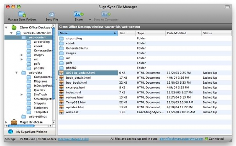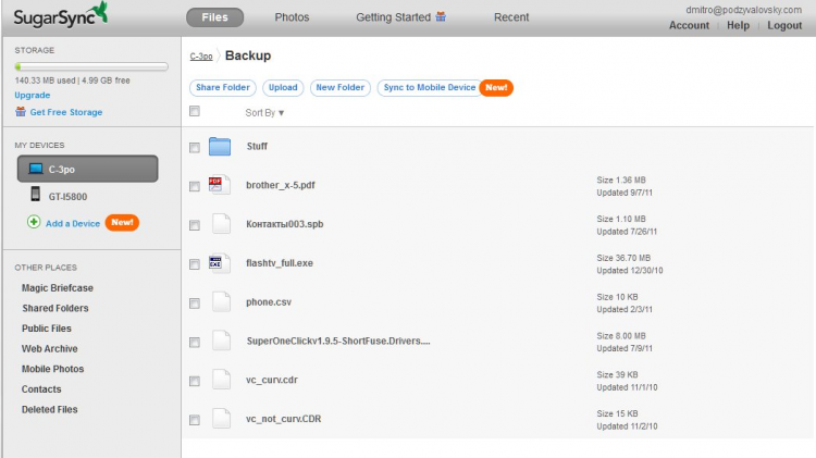 SugarSync Приложение, которое предназначено для резервного копирования пользовательских данных и их дальнейшего хранения в «облаке». Это позволяет теоретически получать доступ к данным из-под любого устройства, предоставляющего удобный доступ в Интернет.
