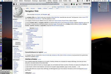 SunriseBrowser Браузер, основанный на ядре WebKit. SunriseBrowser основан на интерфейсе Cocoa, стандартном для Mac OS X и использует возможности этой операционной системы. Sunrise не содержит каких-либо средств для работы с электронной почтой или создания веб-страниц.