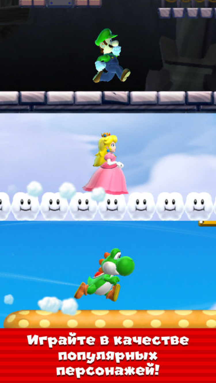 Super Mario Run Веселый и красочный раннер для iOS, в котором вам встретятся хорошо знакомые персонажи.