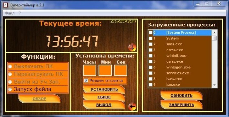 Программа Супер-Таймер 2.1 включает в себя следующие функции