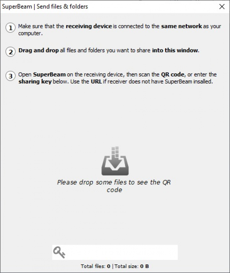 SuperBeam - очень простая в использовании программа, предназначенная для быстрой передачи практически любых, даже крупных файлов, между компьютером и мобильными устройствами. Использует Wi-Fi для передачи данных на высокой скорости, что делает её прекрасной альтернативой использованию кабелей.