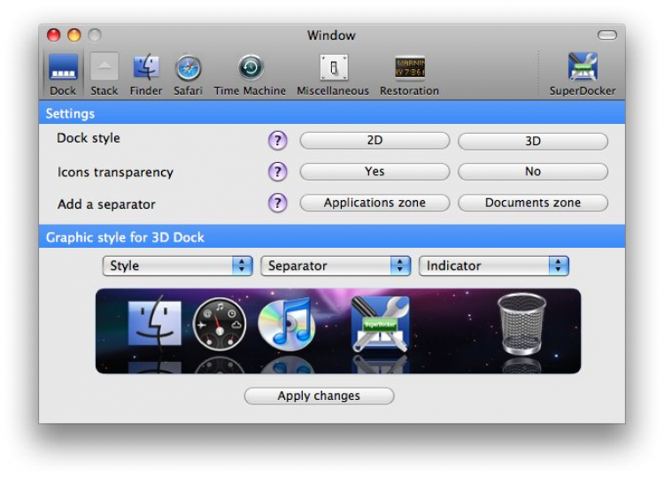 SuperDocker Программа для настройки внешнего вида рабочего стола, а так же Finder, Safari, Time Machine, iCal, iChat.