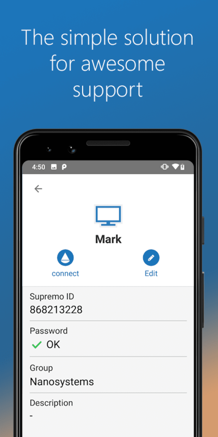 Supremo Remote Desktop – приложение, позволяющее подключаться к компьютеру напрямую, без настройки и установки специализированных программ. Сеанс организовывается через лояльный к пользователю интерфейс. Передаваемые на компьютер файлы шифруются, а в условиях домашнего использования и полного доступа к процессам пользователь располагает возможностью управлять администрированием файлов в системе с экрана своего смартфона. В основе работы Supremo Remote Desktop лежит двухсторонний механизм «клиент-сервер».