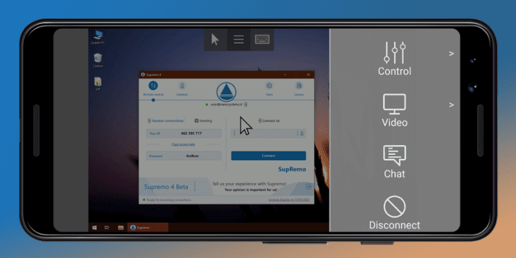 Пользователь, установивший на мобильное устройство приложение Supremo Remote Desktop, располагает следующими возможностями: