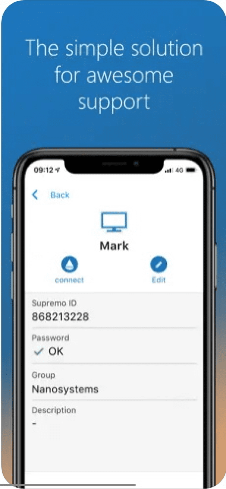 Supremo Remote Desktop приложение, позволяющее пользователю iOS получить удаленный доступ к персональному компьютеру. Поддерживается версиями iOS с восьмой по одиннадцатую включительно.
