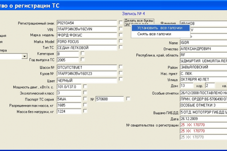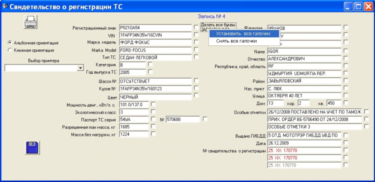 Свидетельство о Регистрации - это программа служит для автоматизации заполнения Свидетельства о регистрации Транспортного Средства.