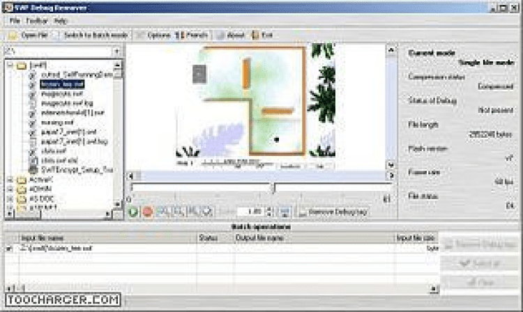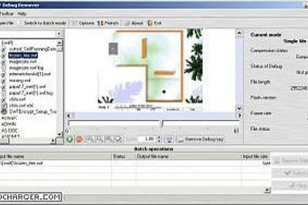 SWF Debug Remover позволит вам удалять enabledebuger (enabledebuger2) tags с паролем или без него (теги для защиты от debugging) из файлов формата SWF Flash любых версий (удаляет enabledebuger из SWF-файлов версии 5 и enabledebuger2 из SWF-файлов версии 6 и выше). Программа имеет встроенный проигрыватель SWF-файлов. SWF Debug Remover может роботать с упакованными SWF-файлами, а также запаковывать их после обработки.