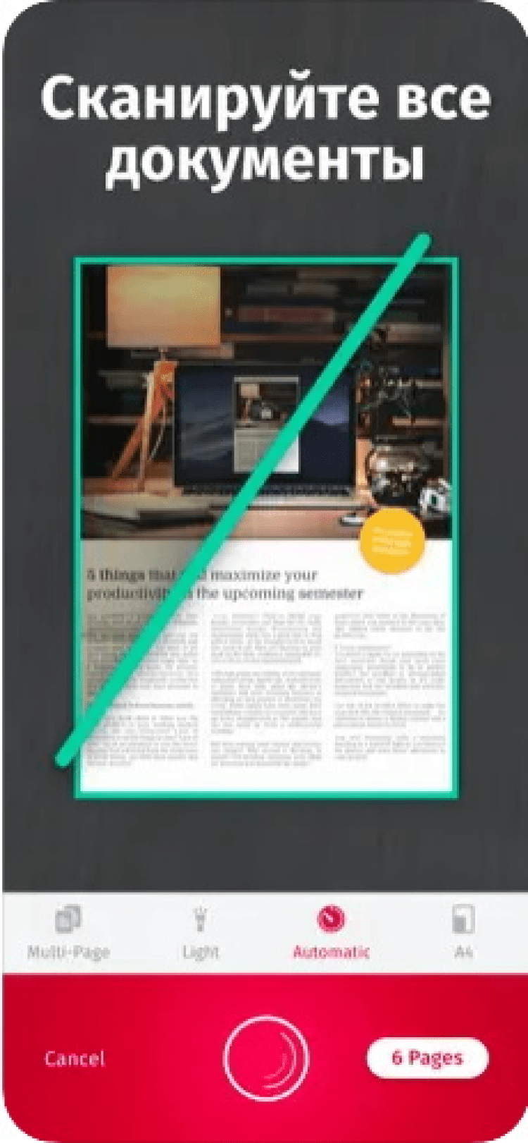 SwiftScan - сканер документов Это программа, которая позволяет сканировать любые документы в высоком качестве, а затем сохранять их в формате PDF. Полученные документы можно отправлять по электронной почте или загружать на Box, Dropbox, Evernote и другие облачные сервисы. Программа обладает самыми новыми технологиями мобильного сканирования, что позволяет сканировать документы с разрешением до 200 точек на дюйм. Так же, при помощи функции автоматической оптимизации качества, уменьшения размытия вы сможете значительно улучшить качество сканов.