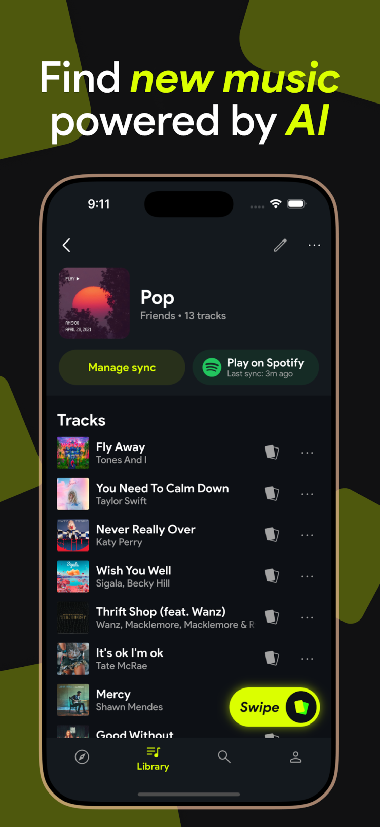 Загрузите Swipefy для Spotify для Android и открывайте для себя новые персонализированные музыкальные рекомендации каждый день.
