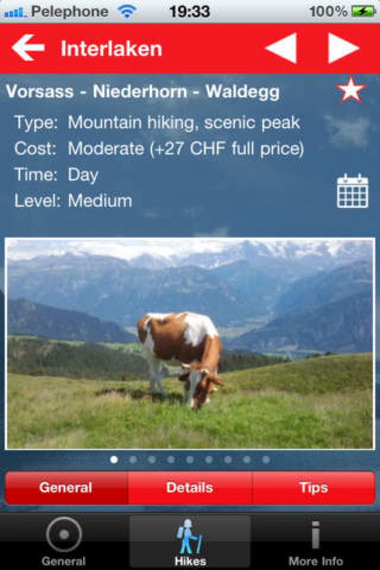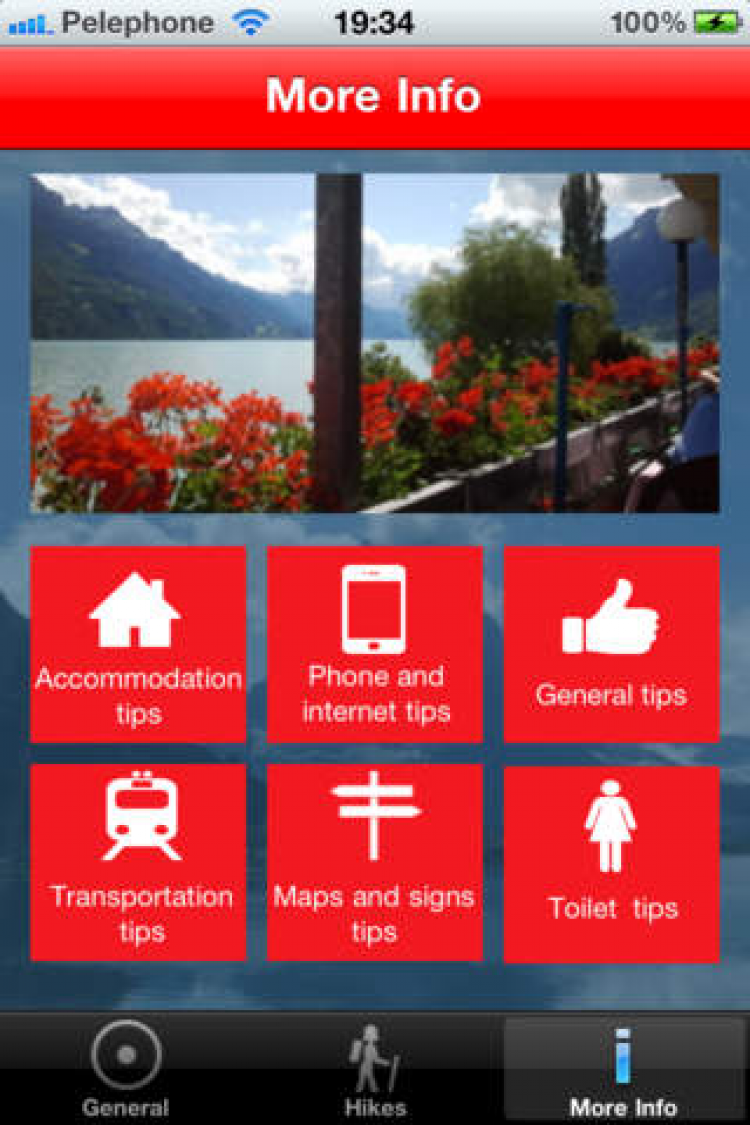 Swiss Hiking Навигатор для женщин, путешествующих по Швейцарии. Программа содержит ряд маршрутов, продолжительностью от половины до целого дня, не требуют специальной подготовки и безопасны даже для прогулок в одиночку.