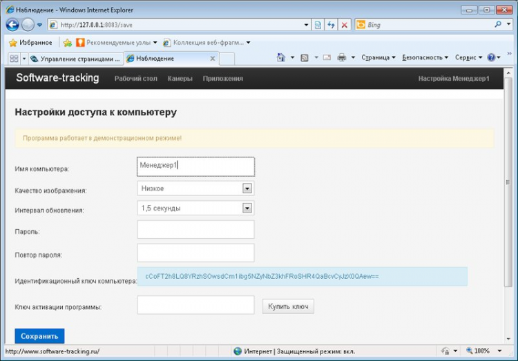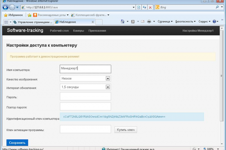 Особенностью программы является способ контроля компьютера - через браузер, то-есть вам чтобы увидеть что именно происходит или происходило за контролируемым компьютером достаточно войти на него через любой браузер в том числе и мобильный (iPad, Android и т.п.)
