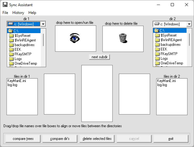 Sync Assistant Удобная программа для сравнения и синхронизации двух директорий. Может быть использована для синхронизации файлов или резервного копирования. Она сканирует две директории и предоставляет результаты в простом и удобном видео. Пользователь может выборочно синхронизировать файлы в обоих направлениях одним нажатием или простым перетаскиванием.