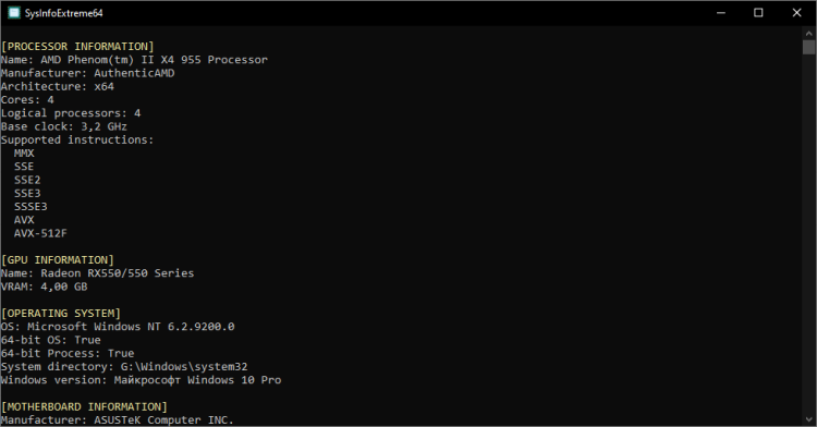 SysInfoExtreme64 — это простая в использовании программа, которая предназначена для получения информации о комплектующих компьютера пользователя. Помогает узнать версию Windows, объём оперативной памяти и прочие характеристики ПК. Программа распространяется бесплатно.