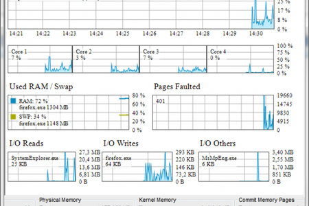 Мощный функциональная программа, созданная для мониторинга ОС Windows. С ее помощью можно следить за нагрузкой на компоненты компьютера, активными процессами, сетевой активностью и т.д.
