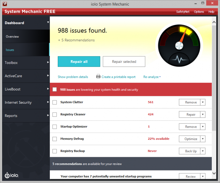 System Mechanic - это полезная программа. Чтобы автоматически диагностировать и исправлять неполадки в работе операционной системы и оптимизировать работу компьютера советуем скачать System Mechanic. Лицензия на свободное ПО позволяет загрузить System Mechanic бесплатно. Создана System Mechanic для Windovs XP, 7, 8, 10 с разрядностью x32, x64.