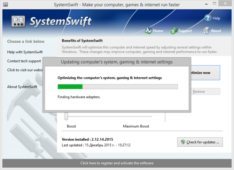 SystemSwift произведет небольшие изменения в регистре Windows, что позволит оптимизировать использование памяти, приоритет использования процессора фоновыми приложениями, доступ к жестким дискам и скорость записи, а так же многое другое.