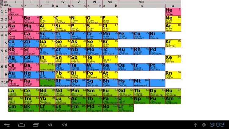 Таблица Менделеева на кранах вашего мобильного устройства. Данная таблица содержит полную информацию обо всех элементах. Будет полезна в учёбе, а также для общего развития.