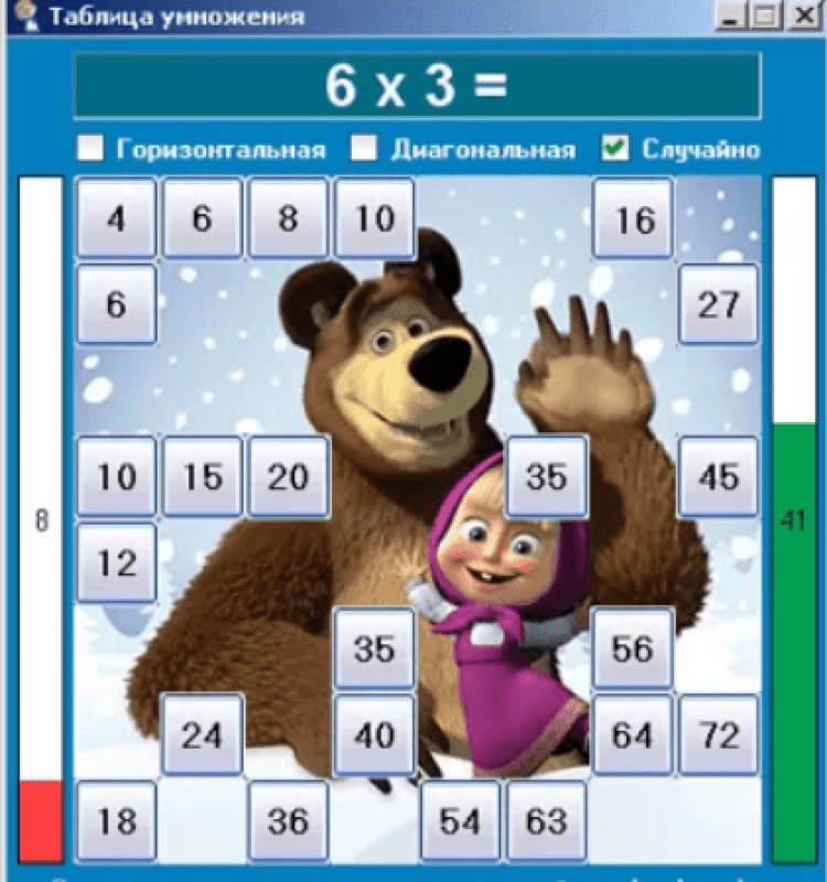 Таблица умножения в мультиках - это обучающая программа по математике, позволяющая изучать таблицу умножения тремя различными способами с использованием картинок из отечественных и зарубежных мультфильмов.