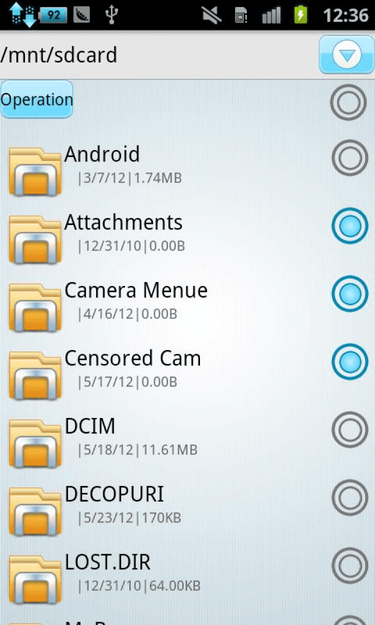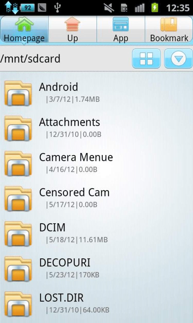 - нажатие и удержание: копировать, вырезать, вставить, удалить, сжатие, экстракция, поделиться, добавить закладку/сменить режим просмотра (таблица / плитка), просмотреть атрибуты;