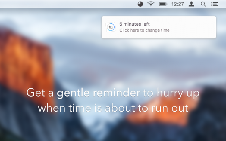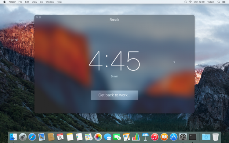Приложение обладает понятным интерфейсом и является очень простым в освоении и использовании. Оно содержит лишь несколько кнопок и ряд только самых необходимых настроек, не отвлекая пользователя на ненужные элементы или инструменты. После включения таймера, программа будет работать в строке меню. Когда время работы будет подходить к концу, она отобразит большое и хорошо заметное уведомление. Возьмите перерыв, затем приступите к работе с новыми силами.