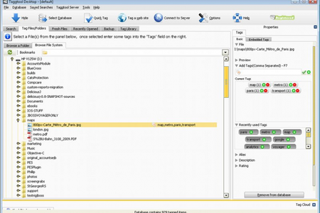 Кроме тегов программа также позволяет выставлять оценки файлам и добавлять короткие описания, позволяя навести полный порядок на жестком диске. Она может автоматически импортировать метаданные для таких файлов, как документы MS Office и PDF, JPG изображения, и MP3 треки. Вся информация сохраняется в базу данных. Можно создать и использовать сразу несколько баз для разных файлов.