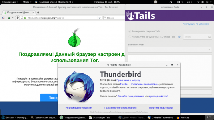 Для взаимодействия с пользователем система использует GNOME. В составе данного дистрибутива есть набор предустановленных приложений для управления файлами, работы с сетью и шифрования данных. По сути Tails предоставляет в распоряжение пользователя браузер, мессенджер, почтовый клиент, менеджер паролей, редактор текста и еще целый ворох инструментов.