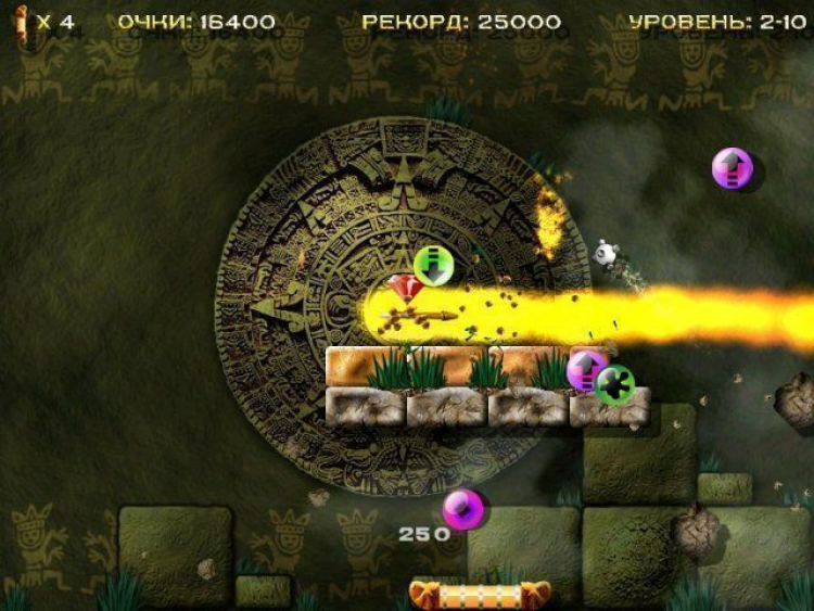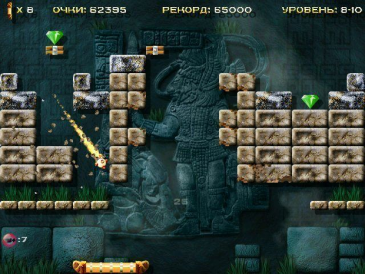 Впереди немало опасностей и неожиданностей, которые грозят гибелью. Однако игра стоит свеч. Преодолев все опасности, вы сможете отыскать священный город индейцев. 3 уровня сложности, множество необычных бонусов, а также превосходное графическое и звуковое оформление обязательно понравятся всем без исключения поклонникам арканоидов.