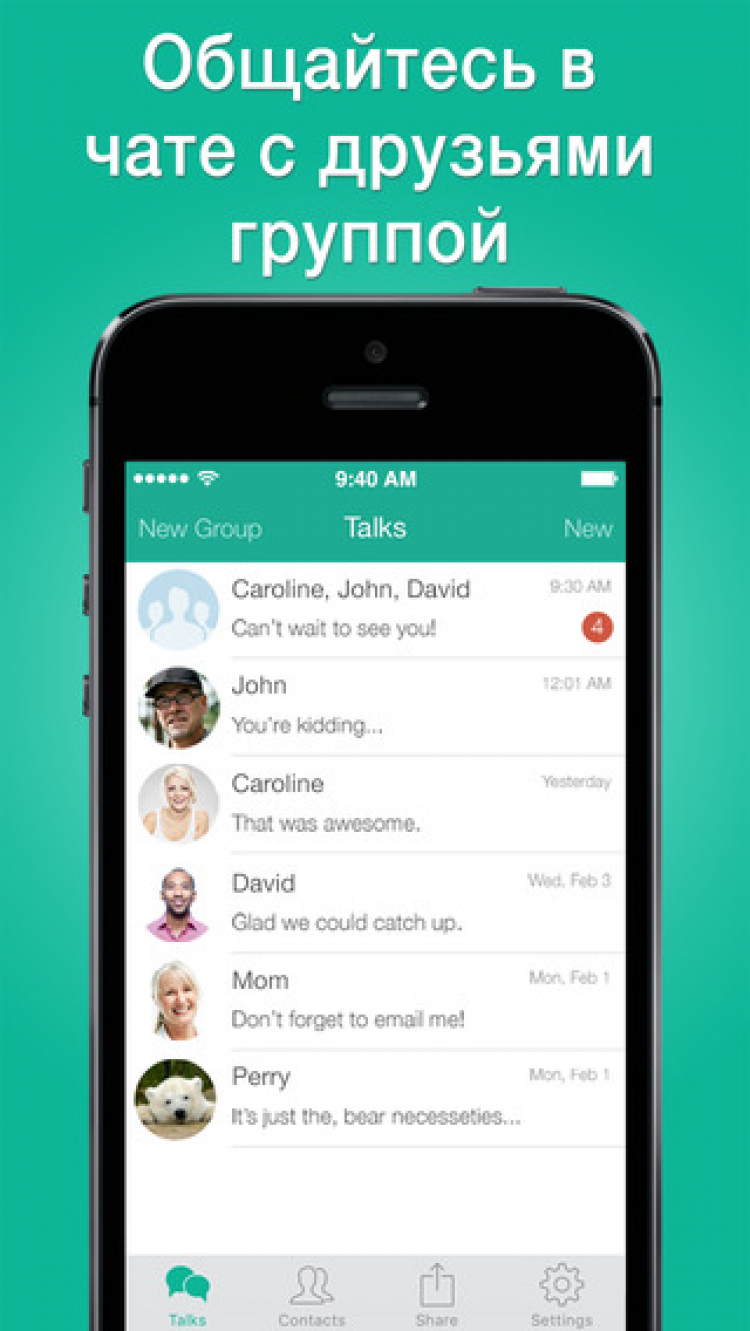 Приятной особенностью программы Talkray является отсутствие необходимости в регистрации. Просто используйте свой номер телефона и программа синхронизирует список контактов с телефонной книгой iPhone и позволит сразу же начать общение.