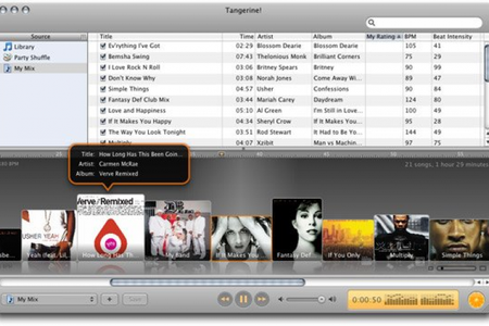 Tangerine! Оригинальный плеер, который самостоятельно составляет плейлист с ритмичной музыкой, или наоборот, расслабляющей. Tangerine! составляет плейлисты, анализируя BPM музыкальной композиции и интенсивоность ритма. С помощью этой программы вы сможете больше наслаждаться любимой музыкой, не заморачиваясь составлением плейлистов вручную. Интеграция в iTunes позволяет Tangerine! экспортировать созданные плейлисты в iTunes и брать из медиатеки обложки альбомов.