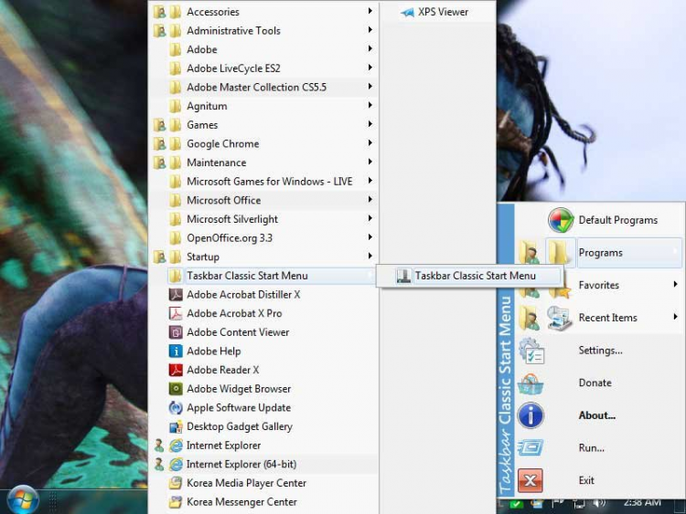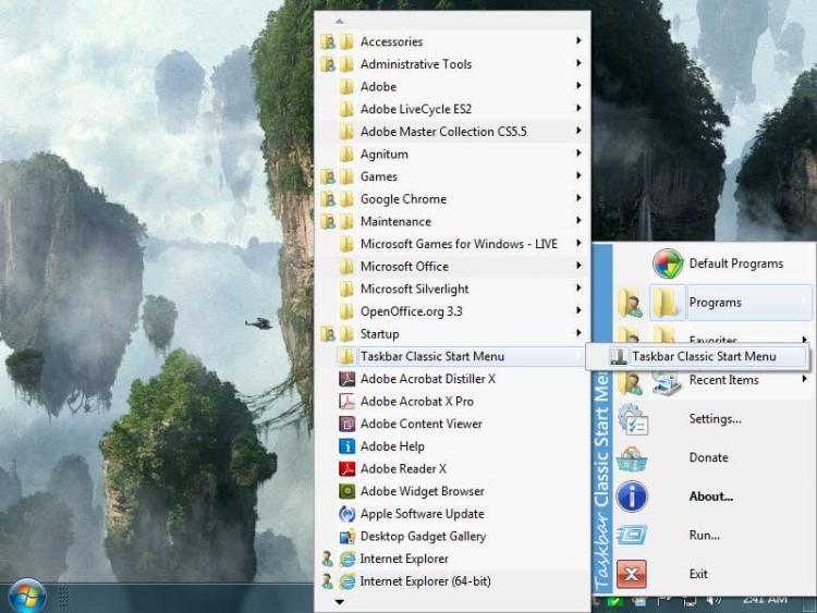 Taskbar Classic Start Menu - это программа добавляет в область уведомлений значок, нажав на который, вы можете вызвать всплывающее меню, аналогичное меню "Пуск" Windows 2000 и Me. Данное меню может автоматически скрывать неиспользуемые пункты (как меню "Пуск" Windows 2000 и Me), отображать только общие или только персональные элементы, или и те и другие вместе (раздельно или слитно), отображать у некоторых элементов заданный пользователем второй дополнительный значок.