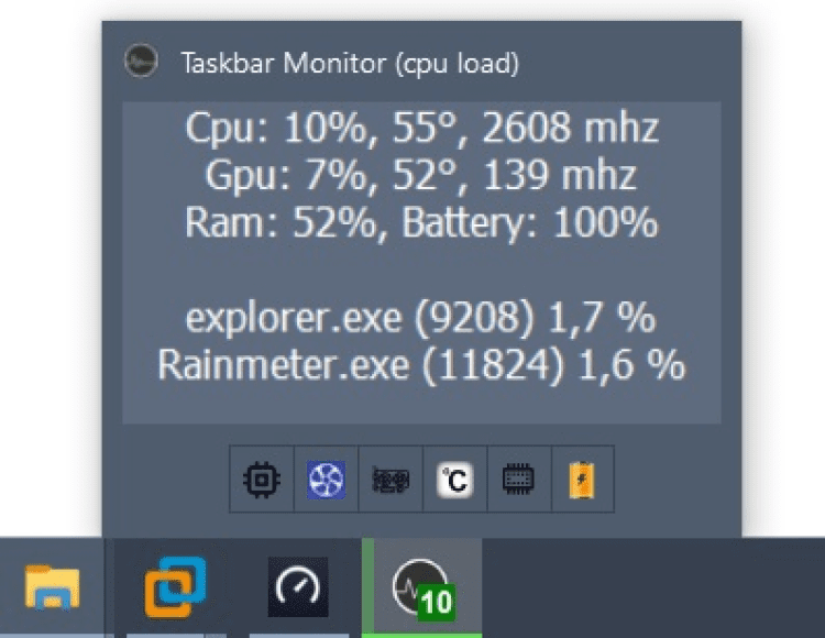 Taskbar Monitor — это программа которая может отобразить системные параметры вашего ПК прямо на иконке в диспетчере задач, либо в системном трее.