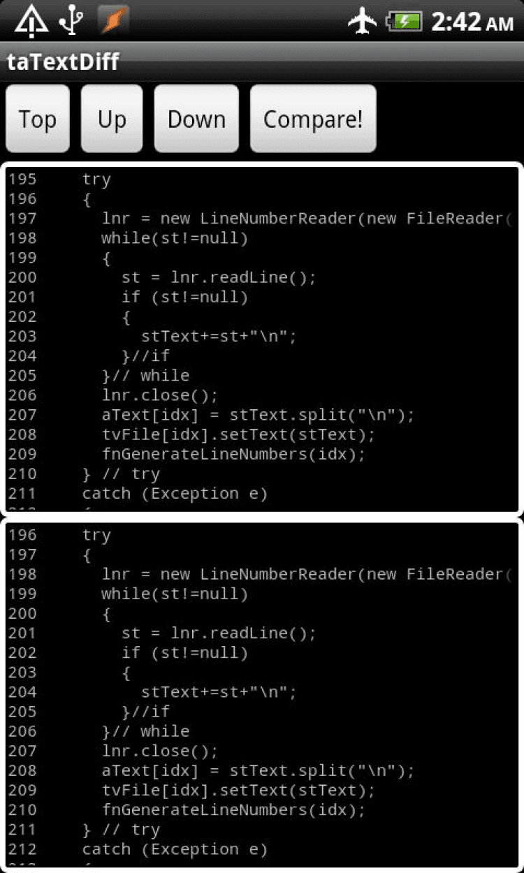 taTextDiff Эта программа отображает разницу между двумя текстовыми файлами. Программа taTextDiff выполнит сканирование текста в обеих панелях и при нахождении различающихся участков, остановится в найденном месте. Приятной особенностью программы является возможность игнорирования разницы в пробелах при сканировании.