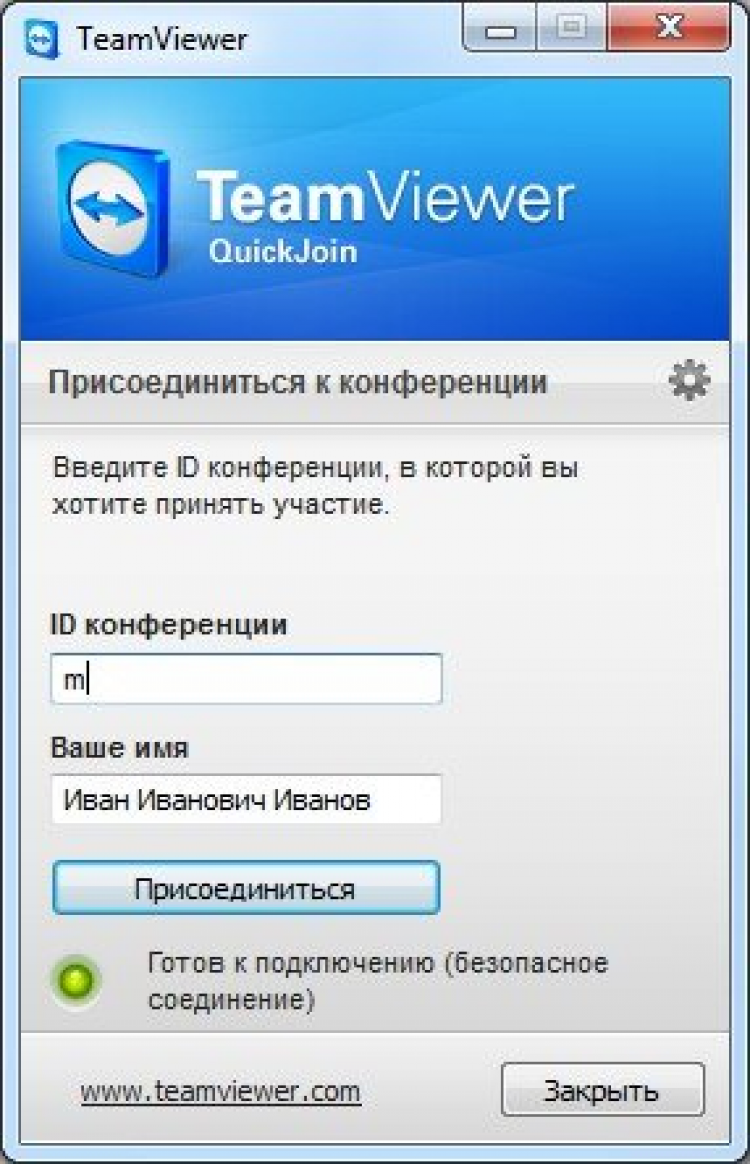 TeamViewer QuickJoin С помощью это модуля ваши клиенты смогут легко принять участие в проводимых вами удалённых демонстрациях. Им потребуется лишь запустить модуль QuickJoin и зарегистрироваться, указав соответствующие данные — оптимальное решение для быстрого и простого проведения удалённых демонстраций в режиме онлайн.