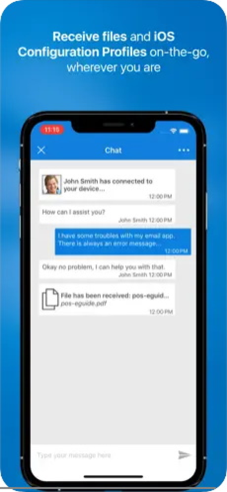 Скачайте TeamViewer QuickSupport на свой iPhone или iPad и получите помощь от технического специалиста ещё быстрее, без необходимости посещения сервисного центра.