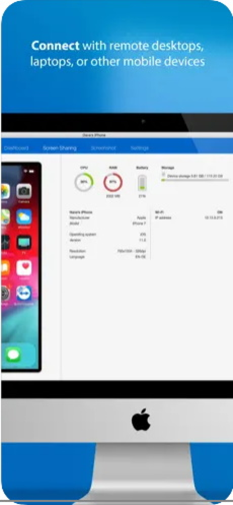 Данная программа позволит создавать скриншоты устройства в режиме реального времени, просматривать информацию об устройстве, список процессов, настройки WiFi, передавать файлы, импортировать профиль конфигурации iOS, осуществлять диагностику системы и сохранять различную информацию в буфер обмена. Она также может быть использована для добавления учетных записей электронной почты и записей Microsoft Exchange.
