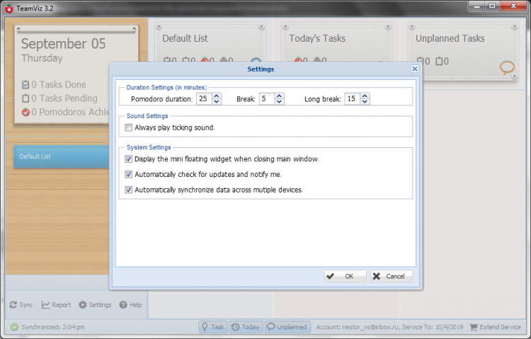 TeamViz Lite - это программа, ранее известное как PomodoroApp, приложение, основная задача которого - повышение эффективности работы. В основу ее работы положен принцип распределения рабочего времени, называемый Pomodoro.